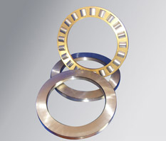 推力圆柱滚子轴承一般由垫圈形滚道圈(轴圈、座圈)与圆柱滚子保持架组件构成,圆柱滚子采用凸面加工, 因此滚子与滚道面之间的压力分布均匀,可承受单向轴向负荷,轴向负荷能力大,轴向刚性也强。