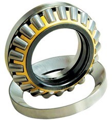 推力调心滚子轴承中球面滚子倾斜排列,由于座圈滚道面成球面,具有调心性能,可允许轴有倾斜,允许倾斜角度0.5°-2°,轴向负荷能力非常大,在承受轴向负荷的同时还可以承受径向负荷,使用时一般采用油润滑。